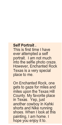 Self portrait in oil of myself onto of Enchanted Rock Texas 2016.
